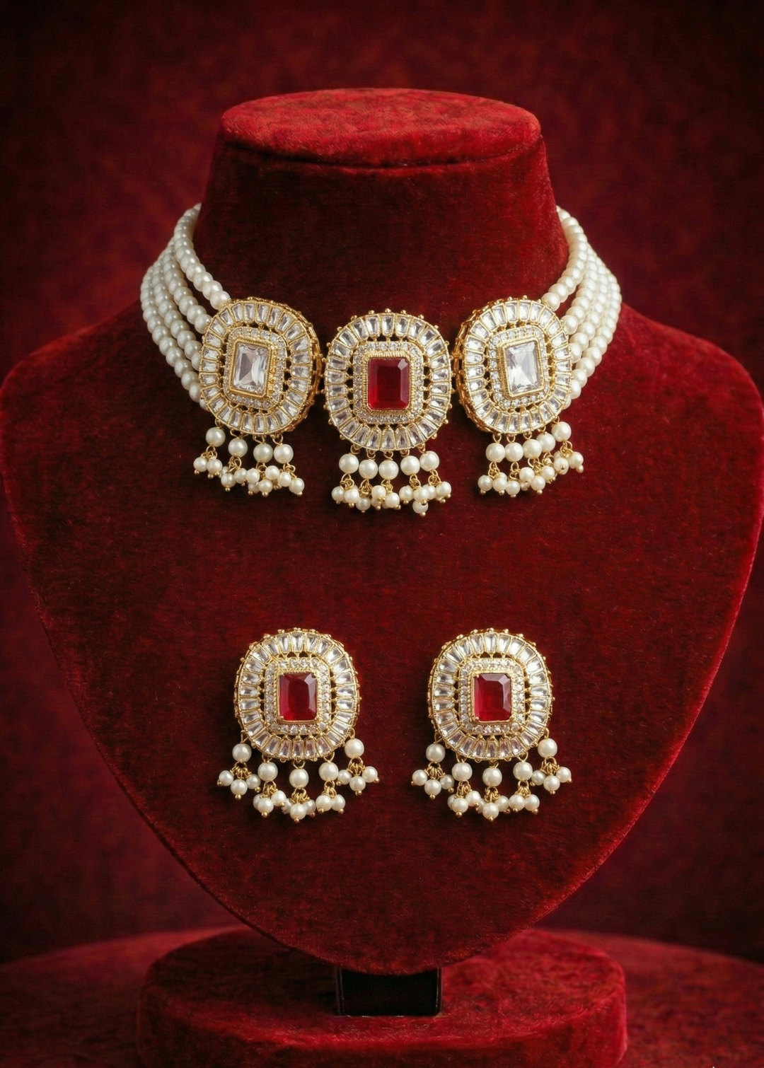 Ruby Crystal Choker Set