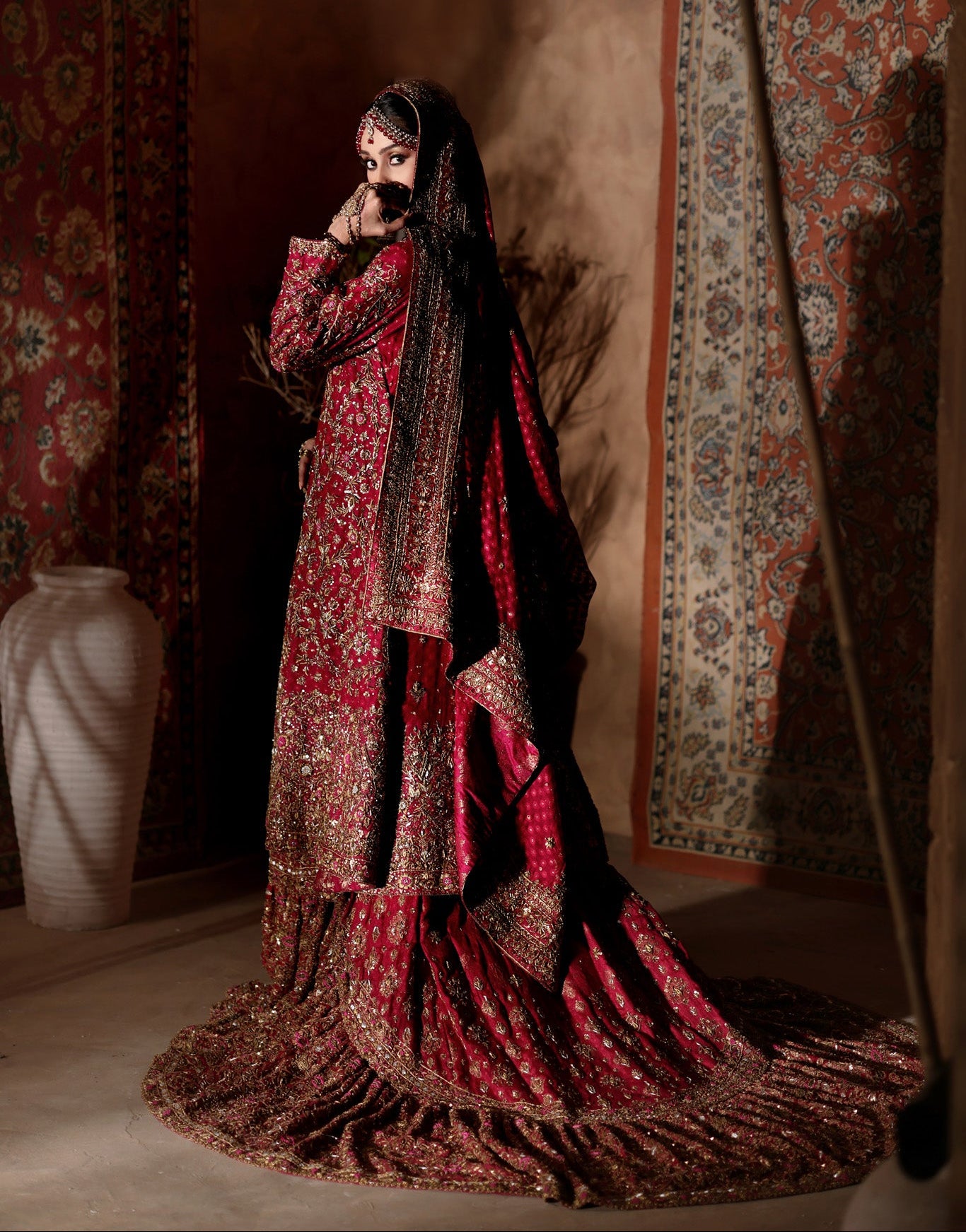 Built through hundreds of hours of artisanal craftsmanship, this piece embodies traditional farshi luxury — opulent, commanding, and designed for a bride who owns the moment.