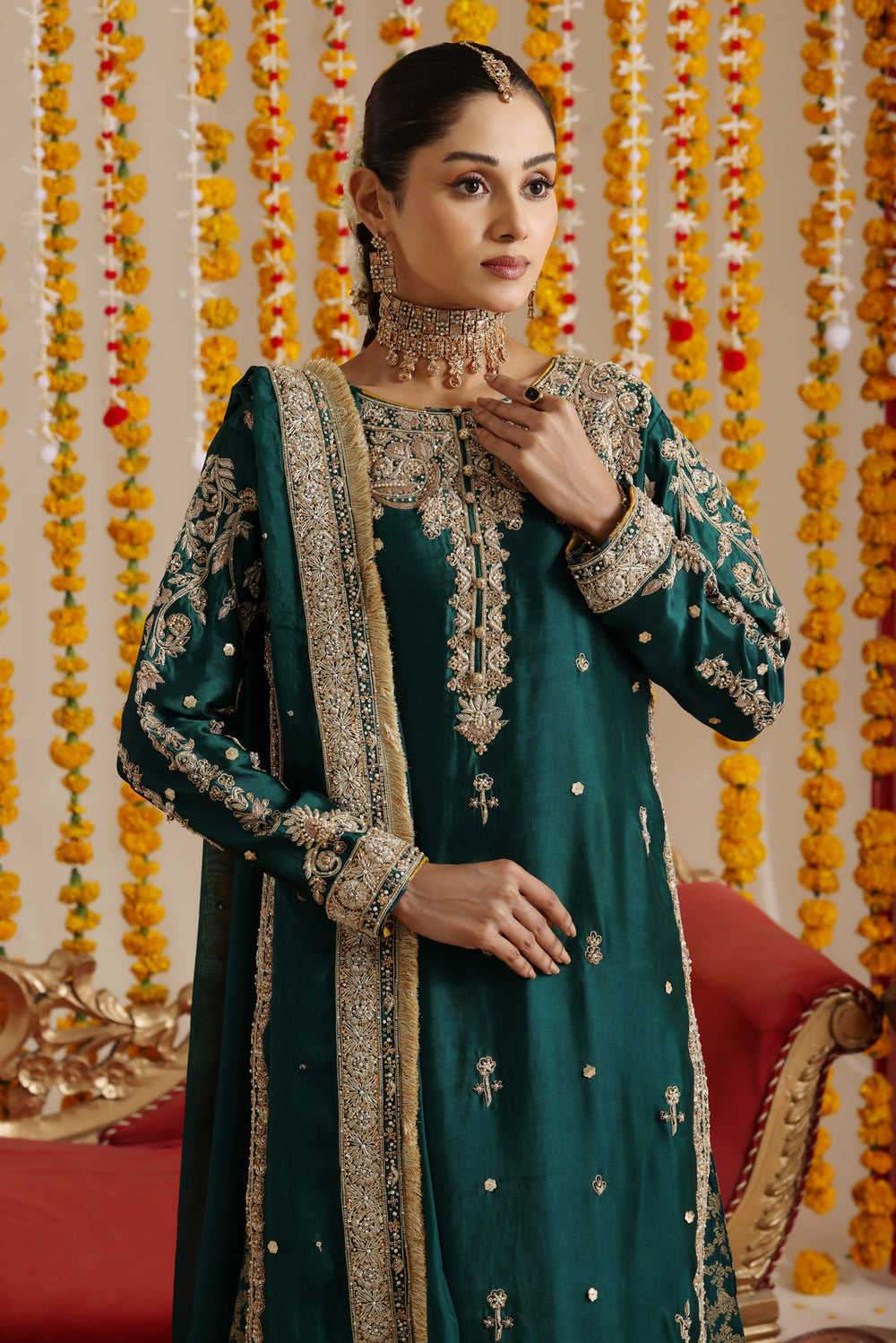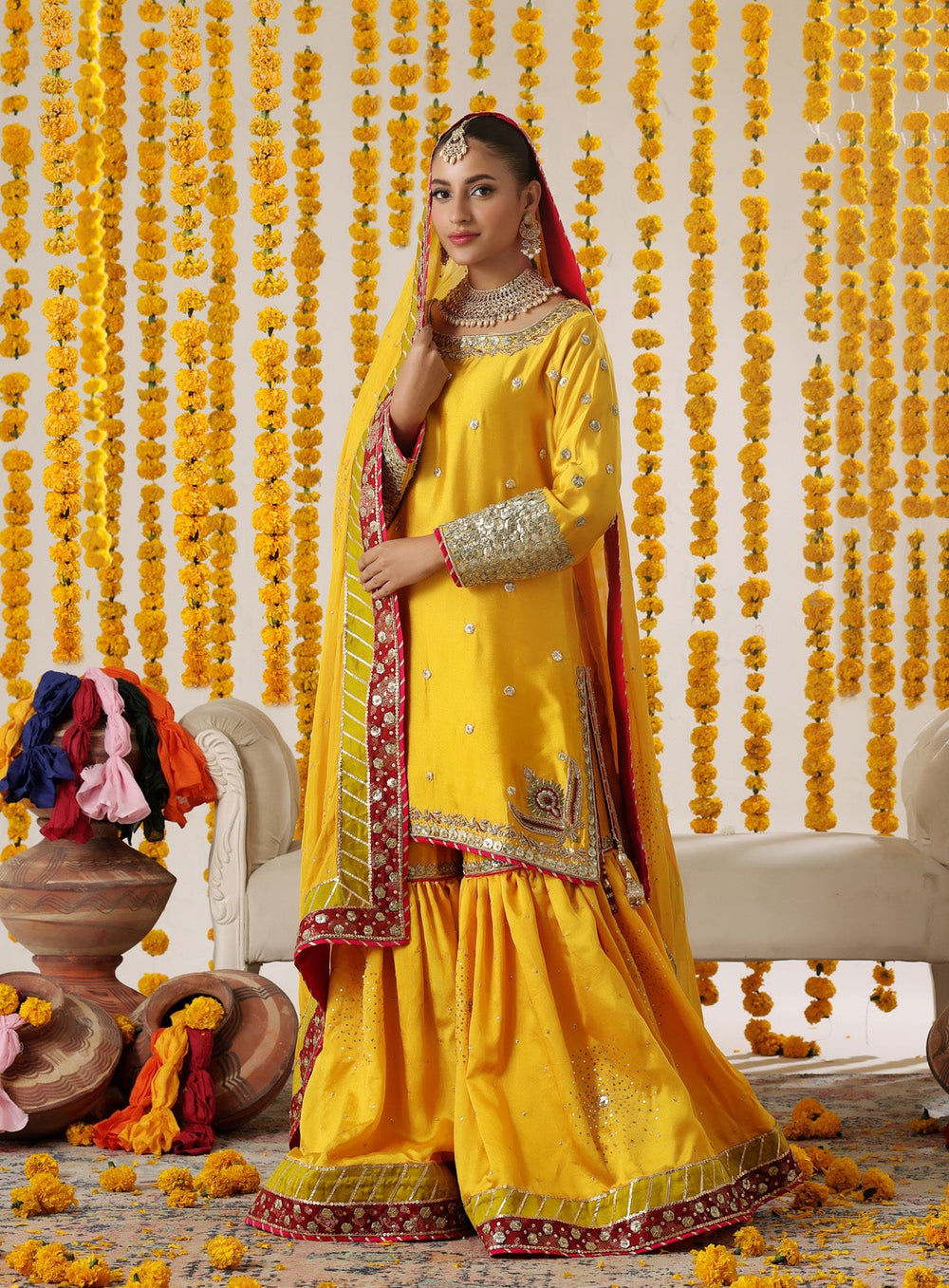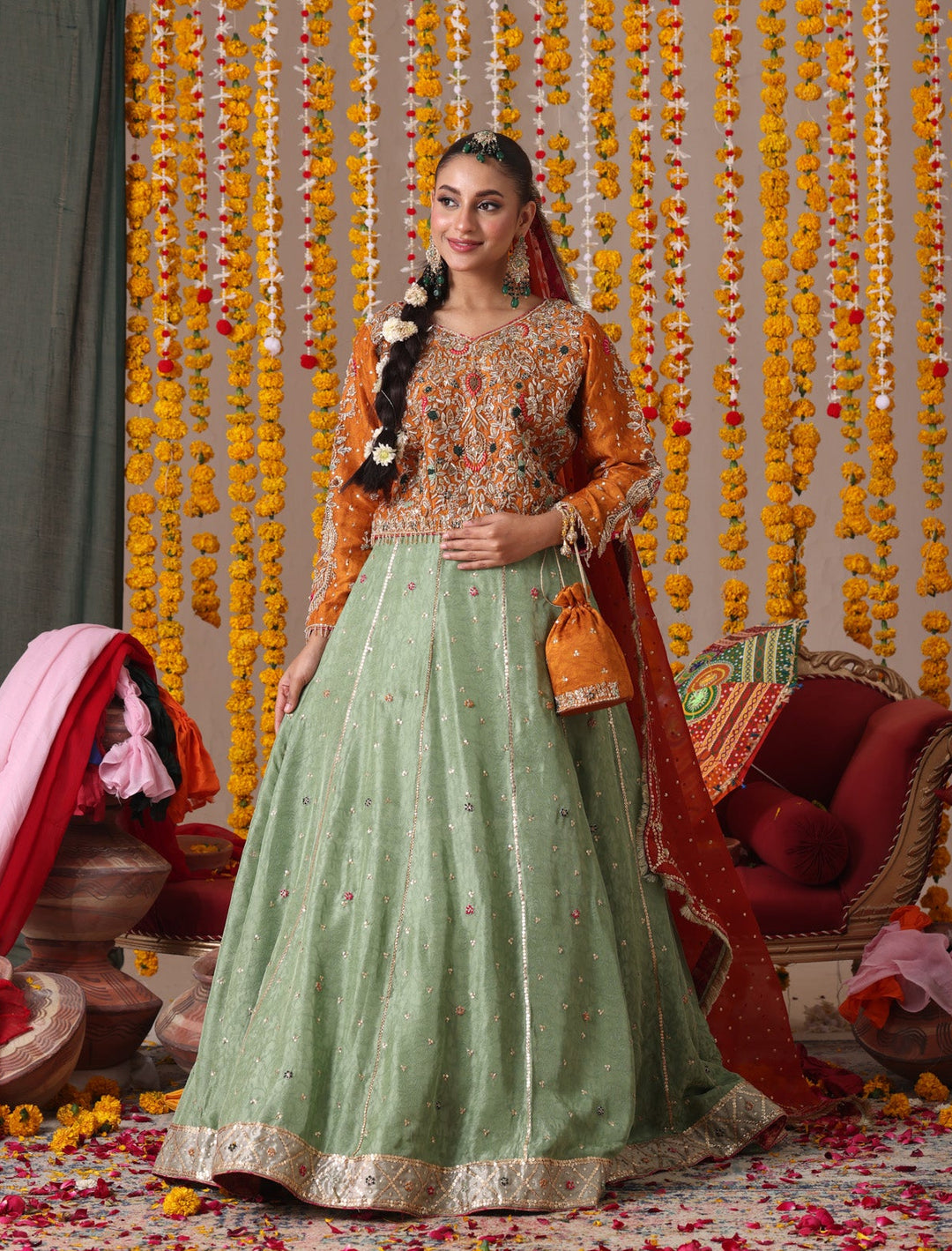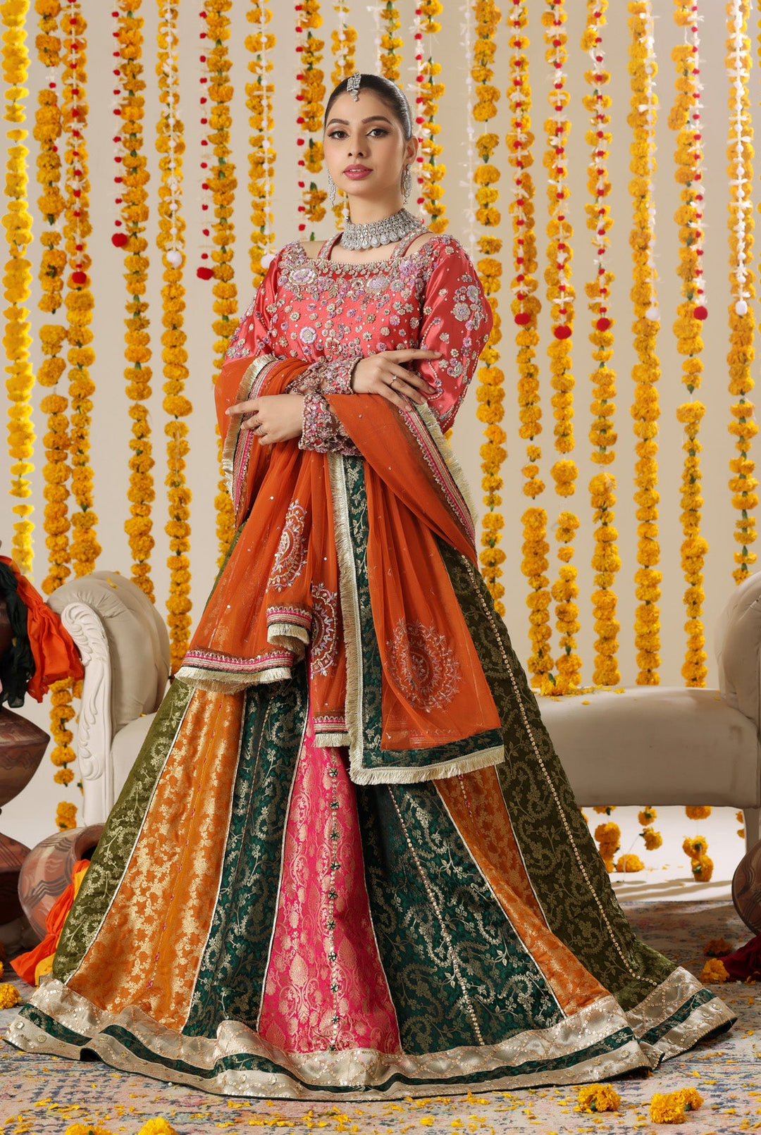 Celebrate the vibrant spirit of pre-wedding festivities with our Mehendi collection. These pieces dance with color and joy, featuring playful yet sophisticated designs that capture the festive essence of this cherished tradition. Light, moveable, and utterly enchanting, each outfit is crafted to let you enjoy every moment of celebration while looking effortlessly stunning.