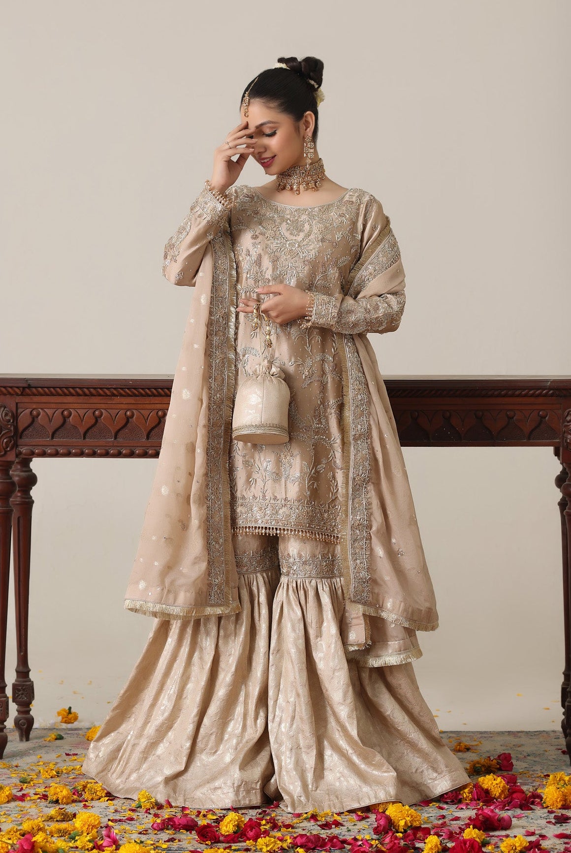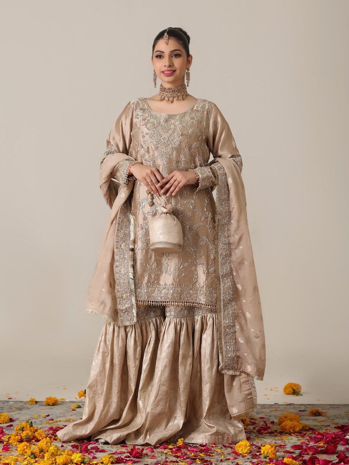Three items: A shirt, dupatta & gharara