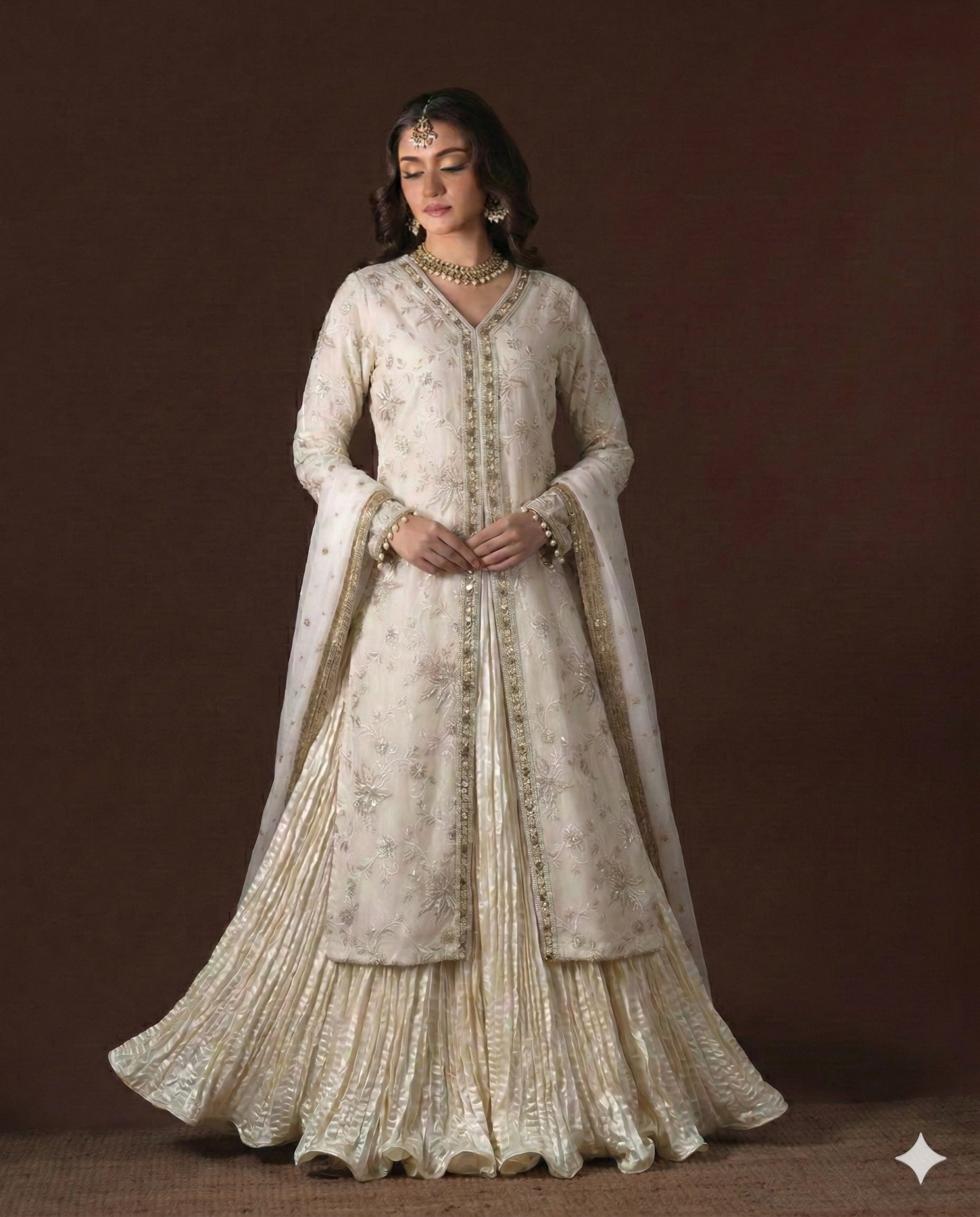 Three items: A front-slit shirt, crinkled skirt & dupatta